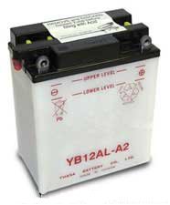 This YB12AL-A2 Battery ships without acid. Acid can be purchased at most large auto parts stores. 12 Volts 12 Amp Hour @10 hr rate 1.2 Ah Charge Current 165 CCA Ships without acid which can be purchased at most large auto parts stores New bolts included Note: Please check dimensions and terminal configuration to ensure this is the proper battery for your application. Off-Season Maintenance : We recommend the below charger to maintain this battery when it is not in use.